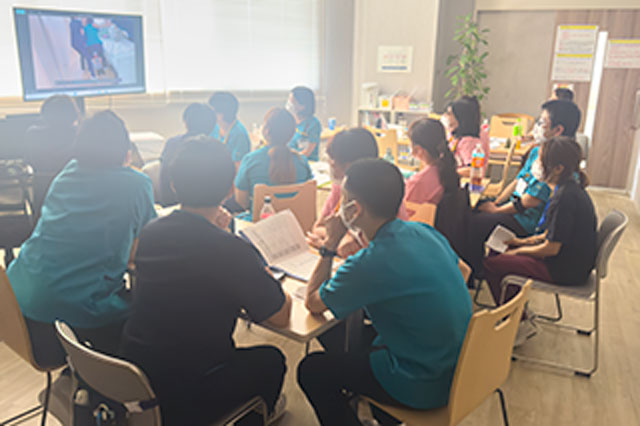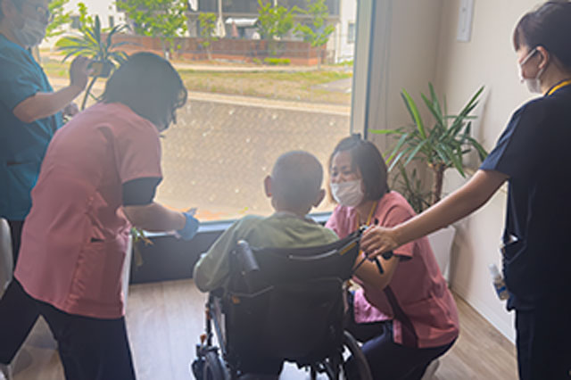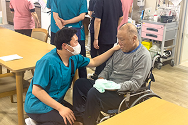 ケアの基本姿勢・技法として『ユマニチュード』を採用し、定期的に外部講師による研修を受けながら、ユマニチュードを実践しています。